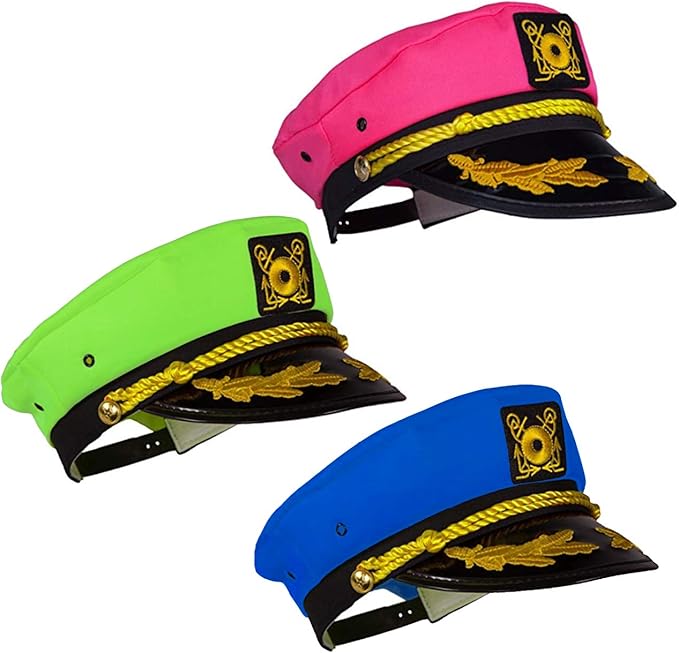 Tigerdoe Yacht Hats Pack Of 3 Captains Hat Neon Captain Hat Boaters Hats Costume Hats Novelty Amazon De Bekleidung