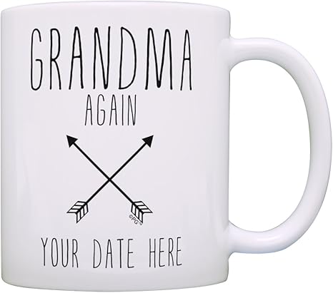 Amazon Com New Grandma Gifts Arrows Grandma Again Announcement Mug With Your Date Personalized Gifts Grandma Pregnancy Announcement Gifts Personalized Gift Coffee Mug Tea Cup White Kitchen Dining