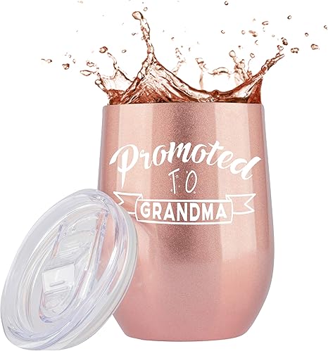 Amazon Com Grandma Gifts 12oz Rose Gold Wine Coffee Tumbler W Lid Promoted To Grandma Tumbler Mom New Grandma Gifts Or Pregnancy Baby Announcement Gifts Grandparents Great Grandmother Gift Kitchen