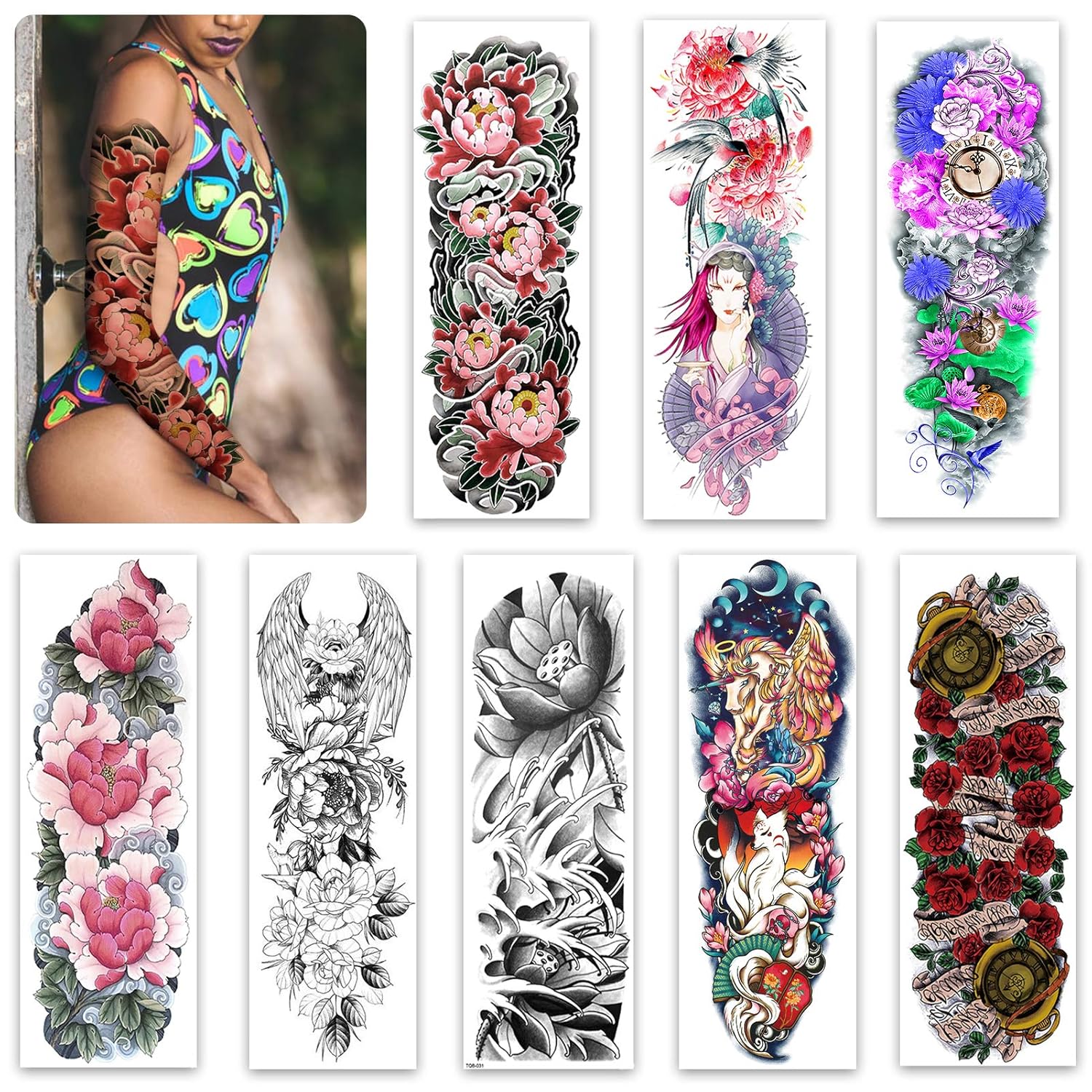 Amazon Com Sleeve Temporary Tattoo For Women Teen Girls Kids 8 Sheets Full Arm Leg Temporary Tattoo Flowers Waterproof And Long Lasting Body Art Realistic Fake Tattoos Easter Beauty