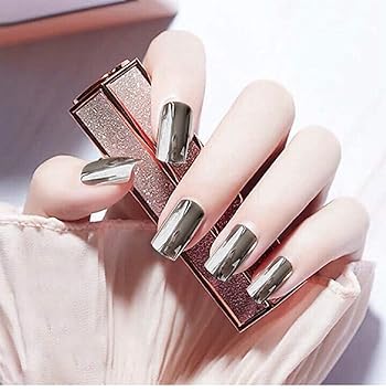 Amazon Com 24 Pieces Fake Nails Punk Nail Art Piece Glue Type Nail Art Finished Long Metal Fake Nail Finished Coffin Patch Beauty