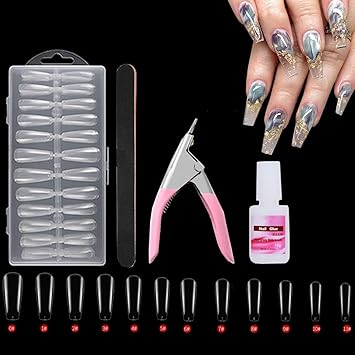 Amazon Com Nail Tips And Glue Fake Nails With Glue Acrylic Nail With Glue 240pcs Long Clear Nail Tips Coffin Shape Ballerina Nail Tips Nail Glue Nail Clipper Nail File For Nail