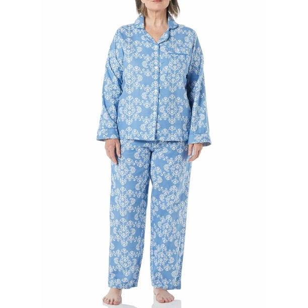 Amerimark Women S Flannel Pajama Set 100 Cotton Pants And Long Sleeve Pj Top Walmart Com Walmart Com
