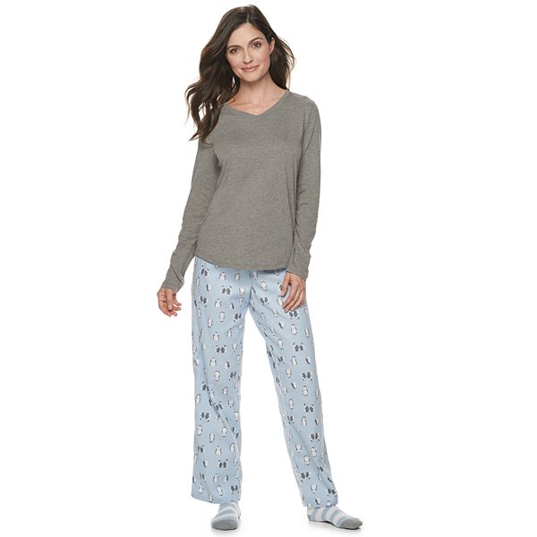 Petite Sonoma Goods For Life Knit Flannel 3 Piece Pajama Set With Socks