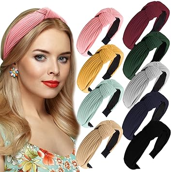Amazon Com Knotted Headbands For Women Girls Funtopia 9 Pcs Wide Plain Turban Headband Fashion Cross Knot Hair Bands With Solid Colors Beauty