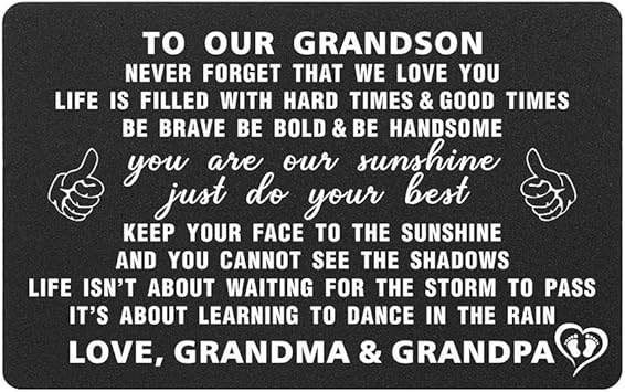 Amazon Com To Our Grandson Gifts From Grandma And Grandpa Inspirational Gift For Grandson From Grandparents Engraved Metal Wallet Card Inserts Love Note Grandson Wedding Day Gifts Office Products