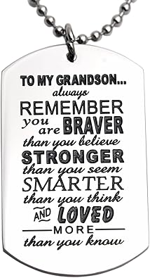 Amazon Com Grandson Gifts From Grandma Grandparents Grandson Necklace You Are Braver Than You Believe Jewelry Dog Tag Clothing