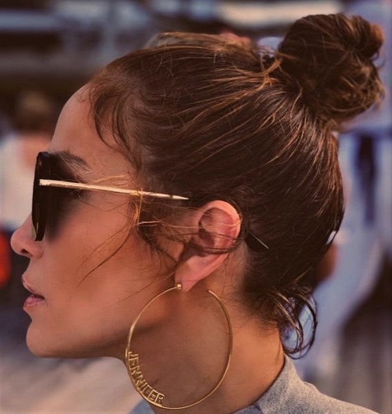 J Lo Inspired Name Earrings Name Earrings Name Hoops Name Etsy