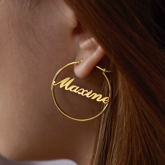 Name Hoop Earrings Custom Hoops Custom Hoop Earrings Custom Etsy